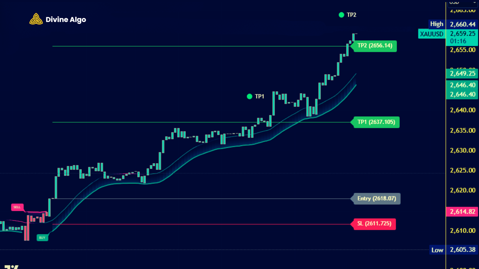 Divine Algo works for a variety of markets like stocks, currencies (forex), futures, and even commodities. It also supports all timeframes, from 1-minute charts to weekly charts. Whether you’re a scalper, swing trader, or options trader, Divine Algo has tools for you!
